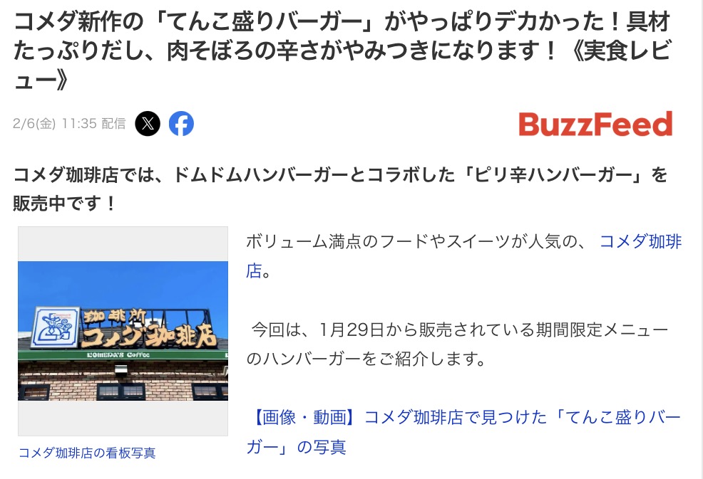 コメダ珈琲店では、ドムドムハンバーガーとコラボした「ピリ辛ハンバーガー」を販売中です!